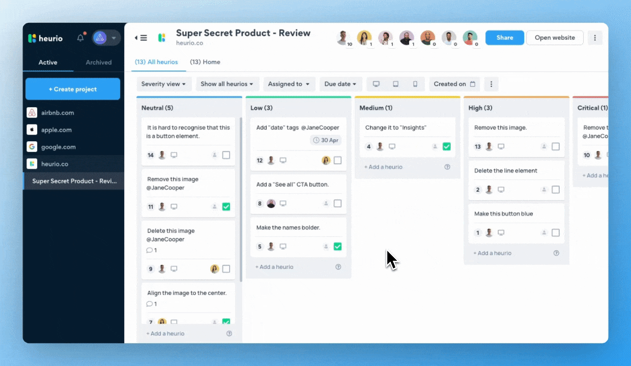 Heurio provides the option to assign a due date to each heurio, allowing for timely evaluation and resolution. This guide offers an overview of how to set a due date for a heurio and how this feature enhances the feedback workflow.